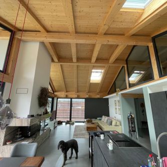 Deckenelement Lignatur und Massivholzwand -