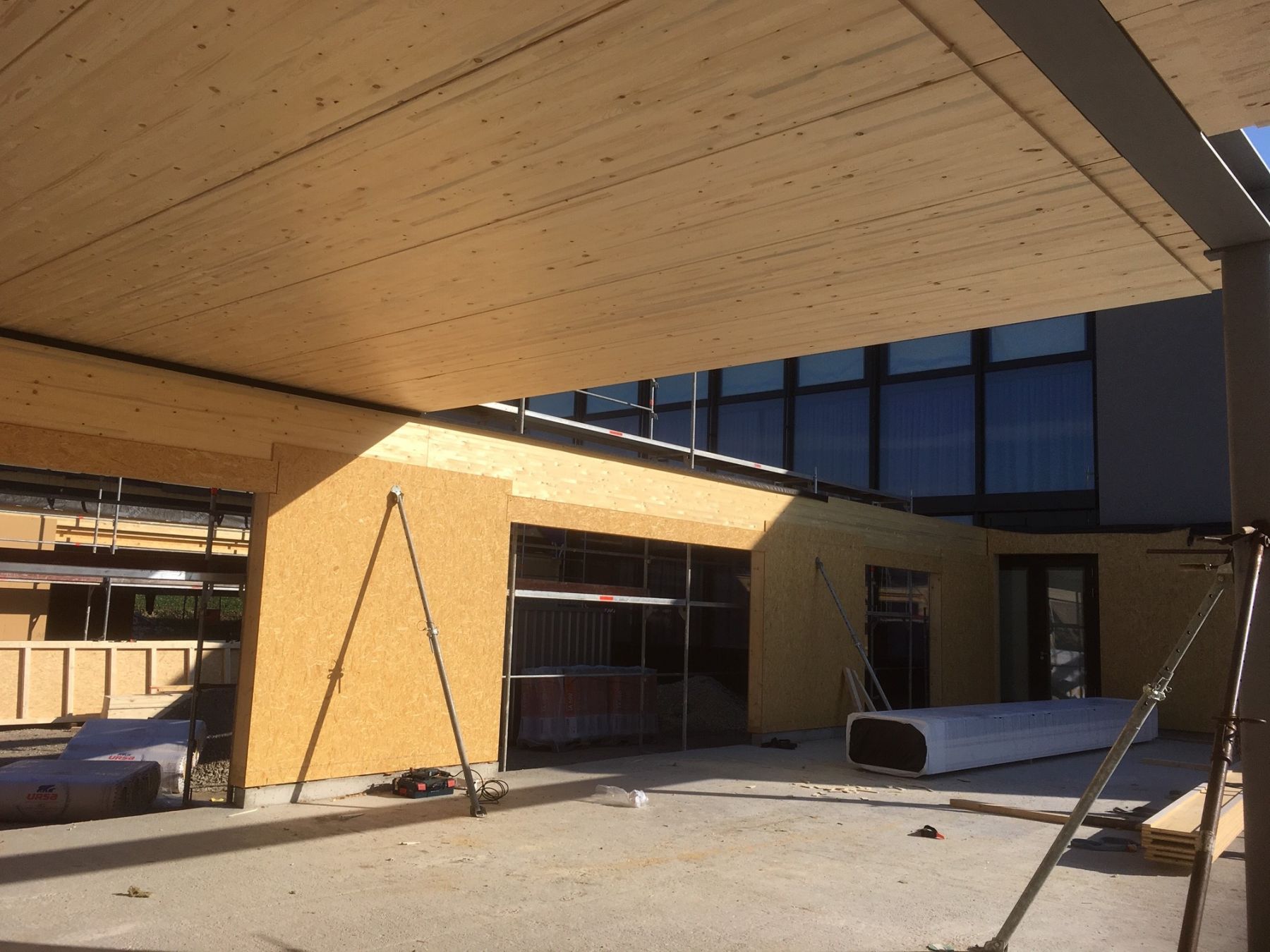 In unserer Werkstatt vorfgefertigte Boden-, Wand- und Deckenelemente verkürzen die Bauzeit vor Ort.