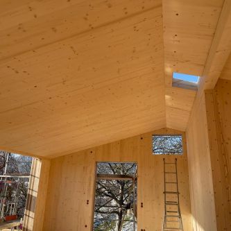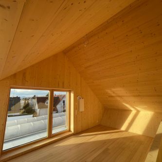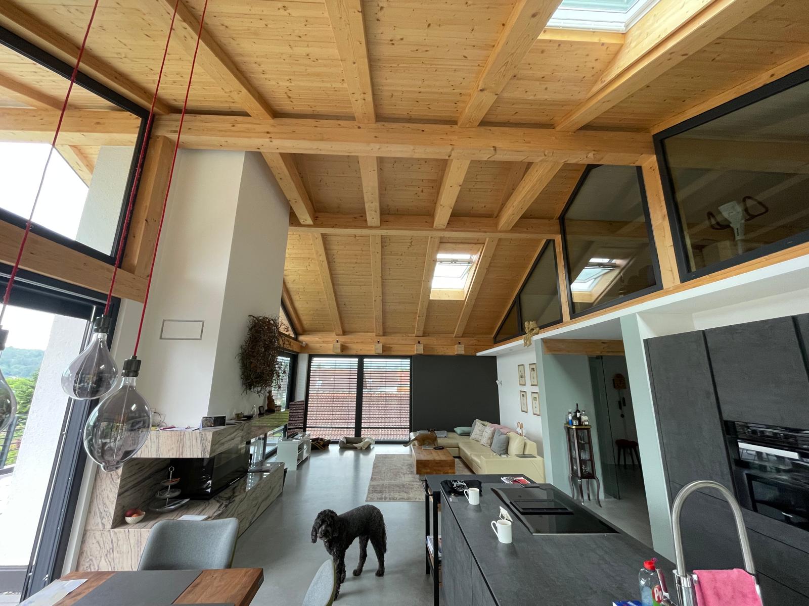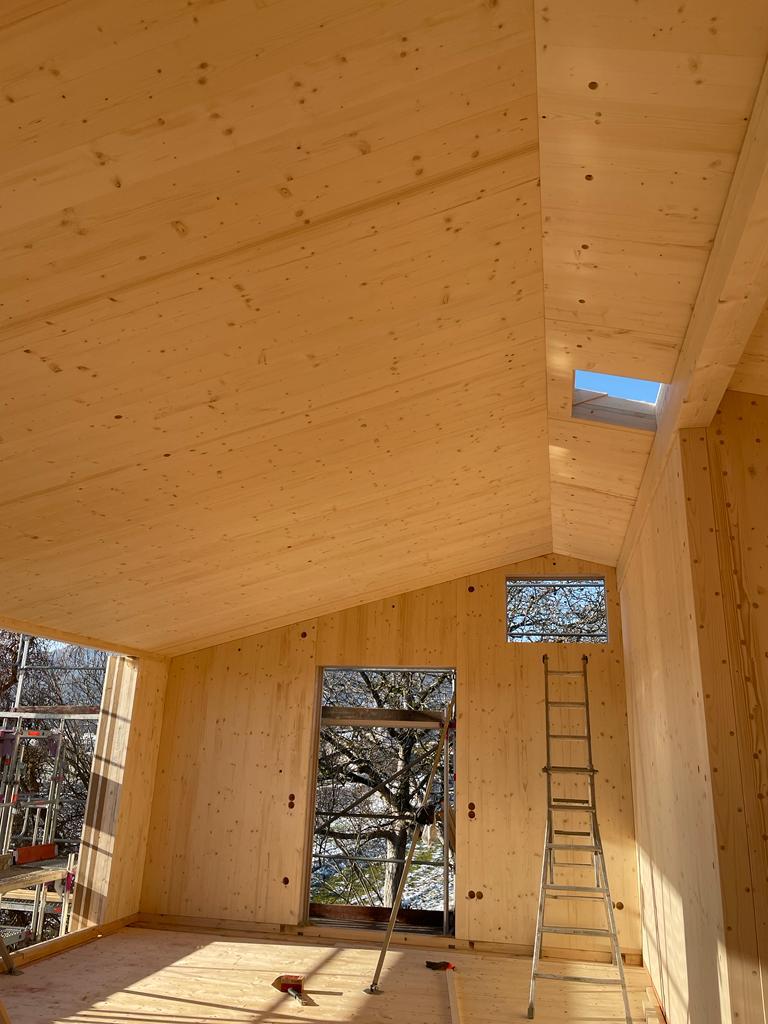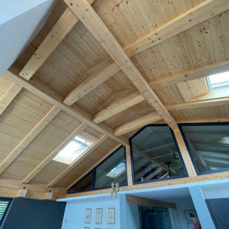 Deckenelement Lignatur und Massivholzwand -